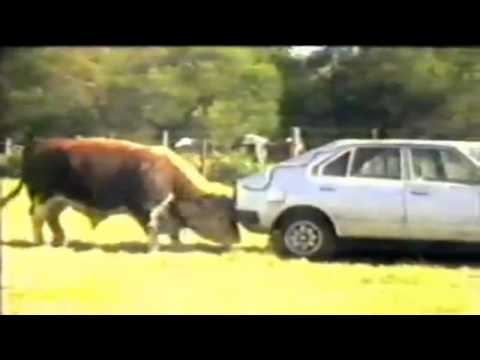 Видео прикол корова и машина